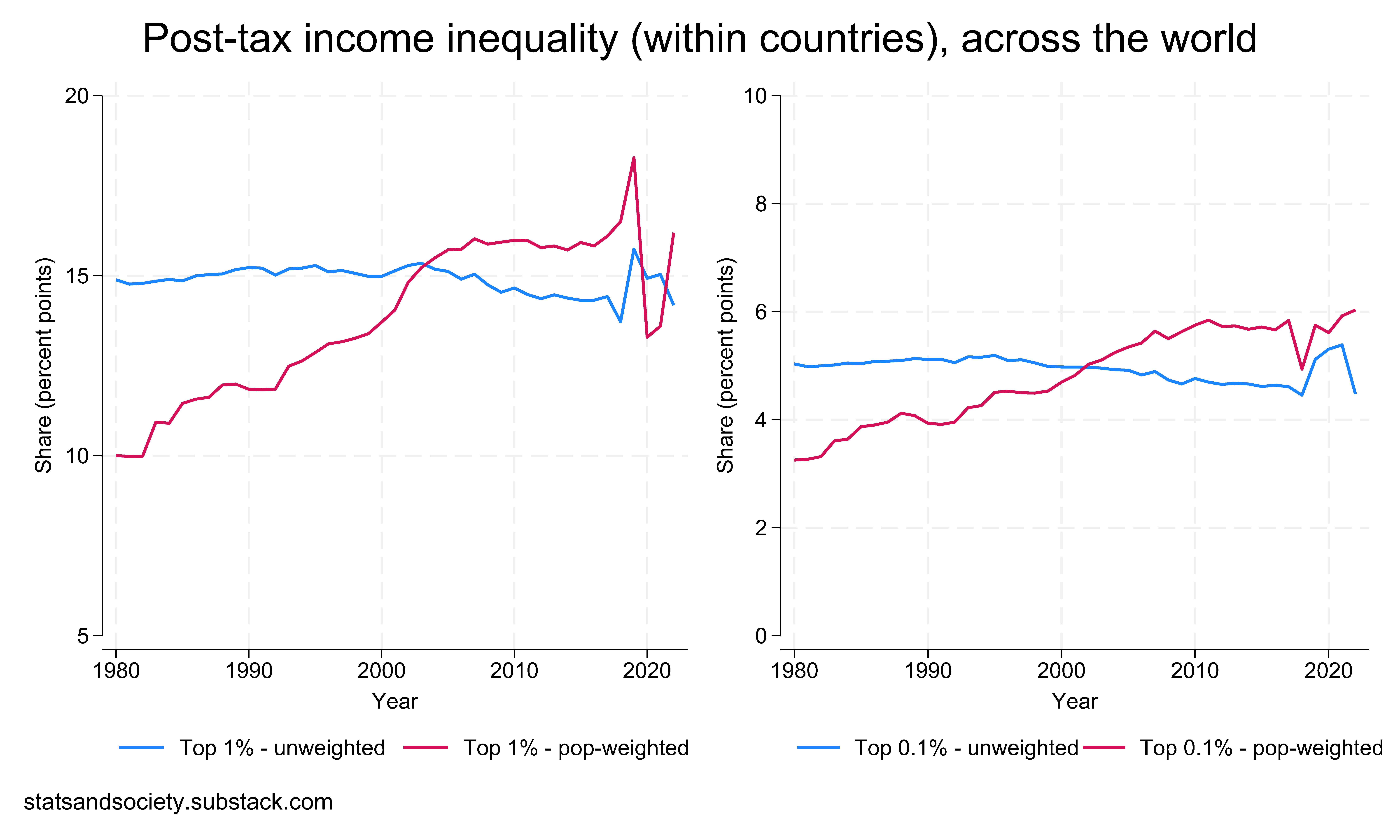 The shares data I’m using come from the Piketty-associated World Inequality Database and from Our World in Data. The Gini data come from the Standardized World Income Inequality Database.