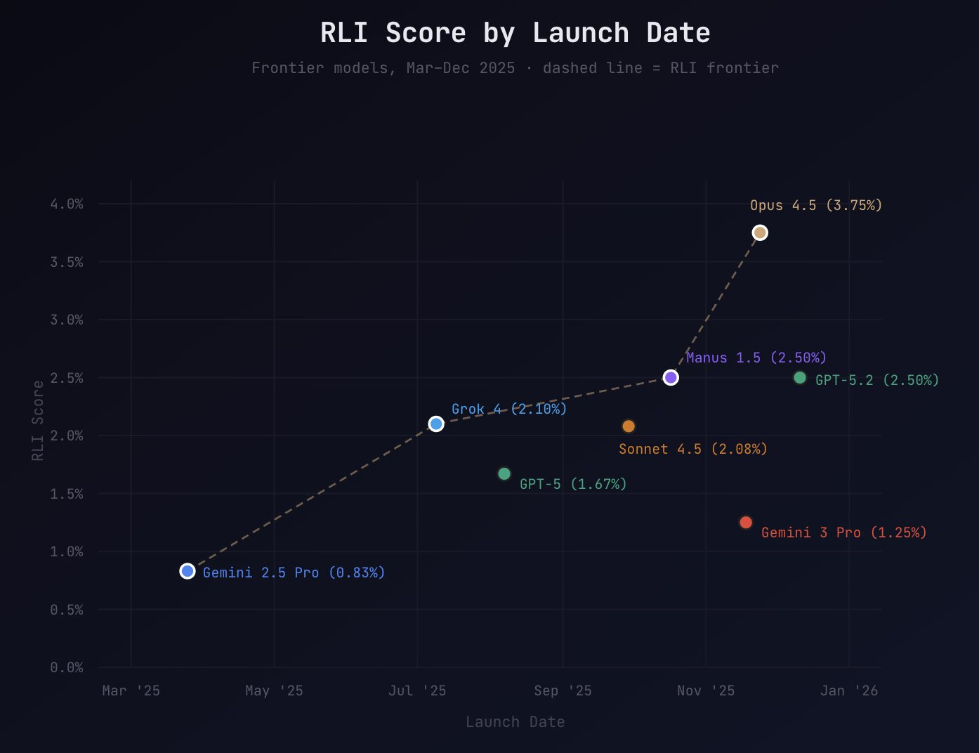 Yes, there are some issues with METR, but you can’t just wholly discount it. Or if you really do want to discount it, take a look at the Remote Labor Index (composed of many diverse freelancer tasks). As one of the top superforecasters Peter Wildeford notes, performance is doubling every ~4 month, meaning that (if trend continues), we get to virtually full RLI automation by late 2029.